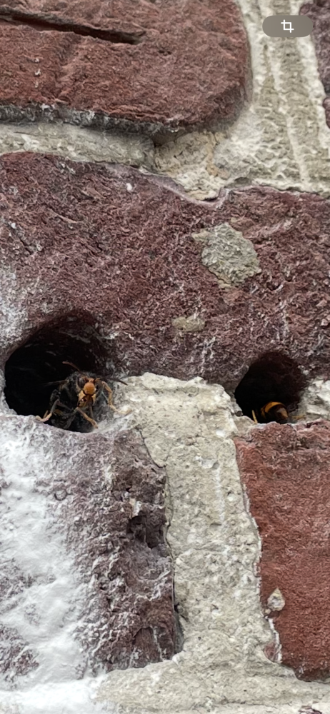 Les frelons asiatiques commençaient à créer un autre nid (secondaire) sur le haut d'une fenêtre dans le bâtiment en face.