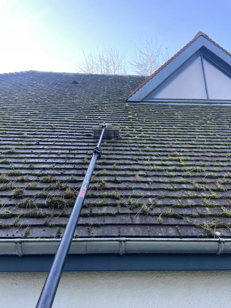 Asgard a d'abord démarré par un grattage à la perche des mousses présentes sur la toiture du garage.